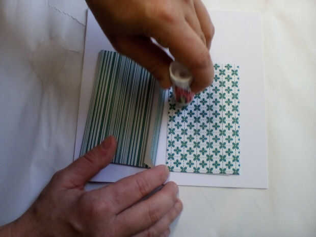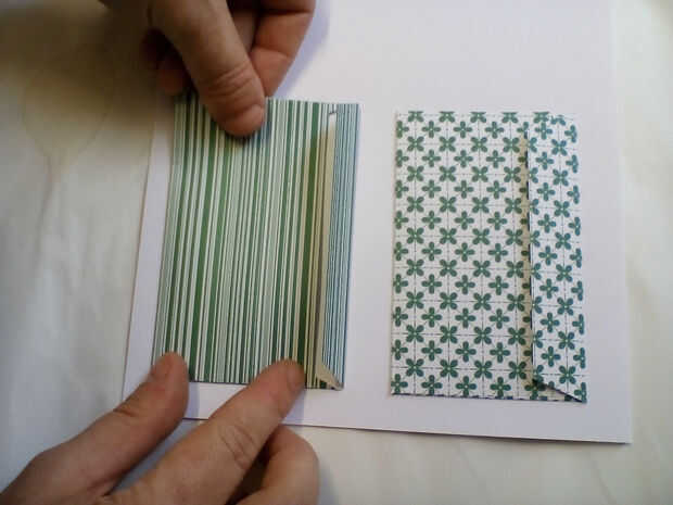 Una vez cortadas, pegadas los sobres en su lugar, compensar un poco, tanto para compensar el borde encuadernado y como una característica de diseño.