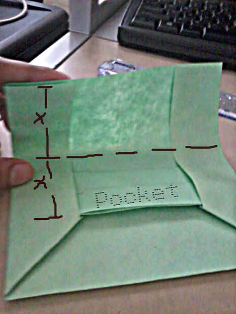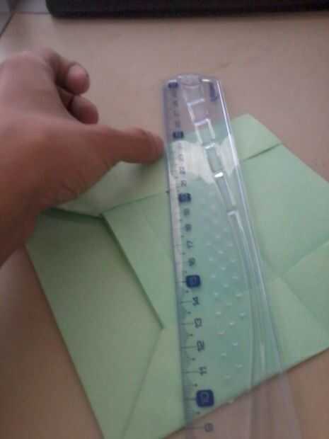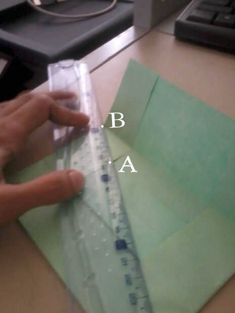 Finalmente tenemos que forma el sello de la aleta para hacerla caber en el bolsillo. He utilizado la regla y mi uña del dedo para hacer un pliegue a punto A B (ver foto tercera y 7). Con él, deslizando la parte superior del hacia adentro de la aleta de lado será más fácil. Una vez usted consigue ese monte Mayon como forma sencillamente Introduzca la tapa de sello en el bolsillo. Voila!