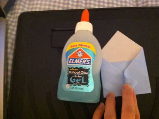 Si va a poner 3D sorpresas como caramelos en los sobres, poner un poco de pegamento debajo de la aleta del lado izquierdo del diamante. Poner en un libro que se seque.