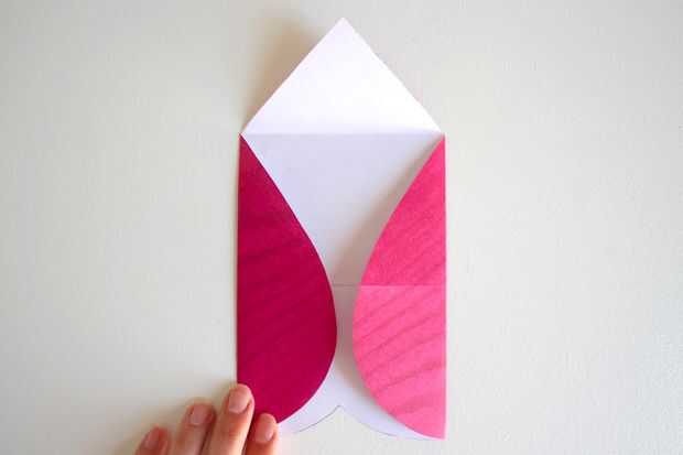 Doblar la parte superior del corazón para ver como luce su envolvente. En este punto puede ajustar los dobleces de lado si están un poco apagado.