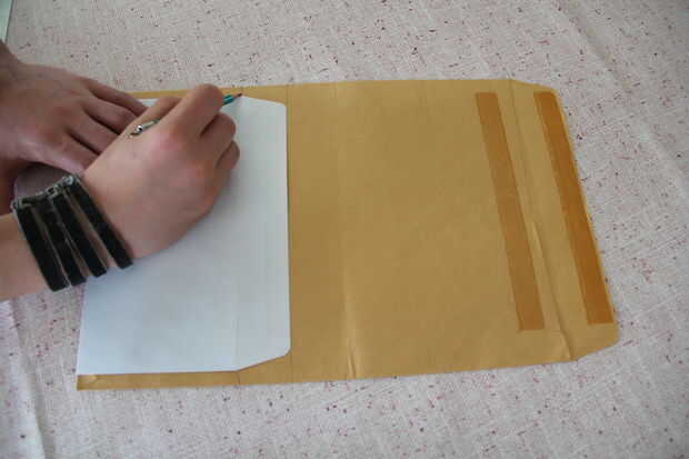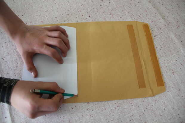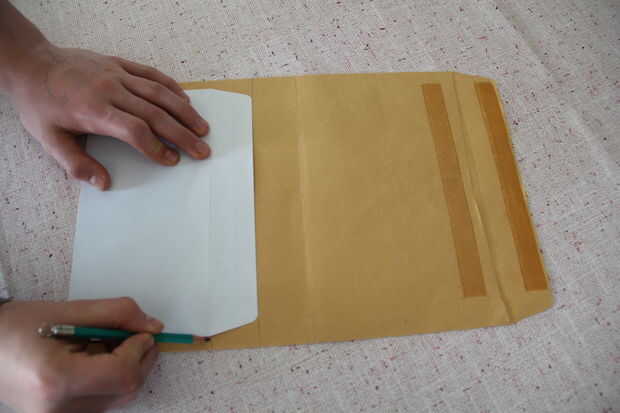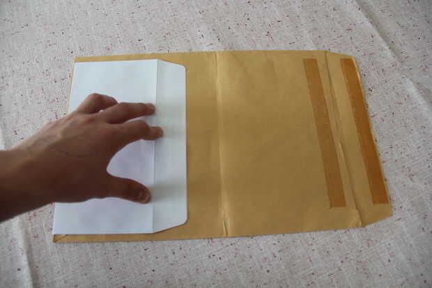 -A continuación Alinee la envolvente o papel (si el papel, deje un espacio en la parte inferior) con el borde del extremo sellado sobre utilizado.