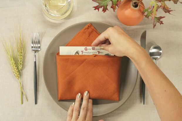 Usa tus servilletas sobres para incluir una 'carta' personalizada o tarjeta a la placa de cada huésped. Son algunas ideas de lo que esto podría ser: