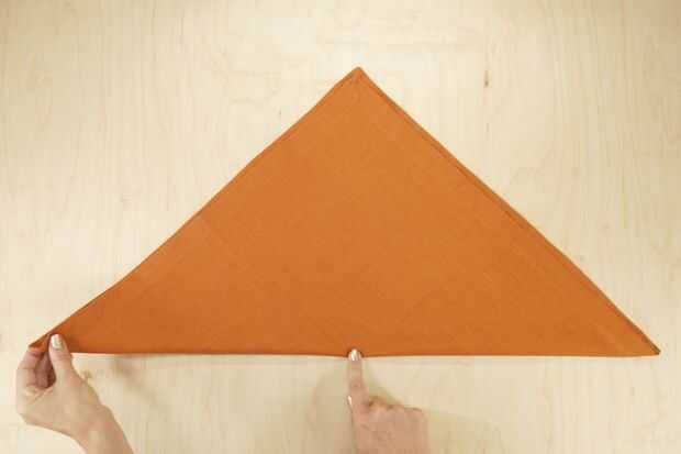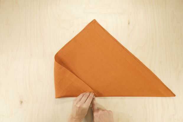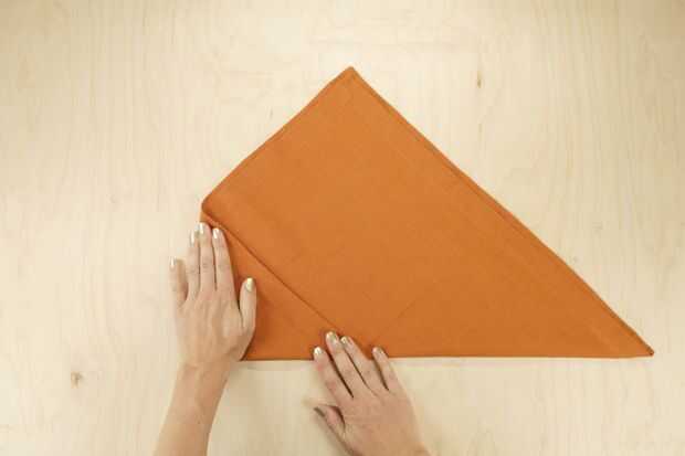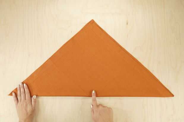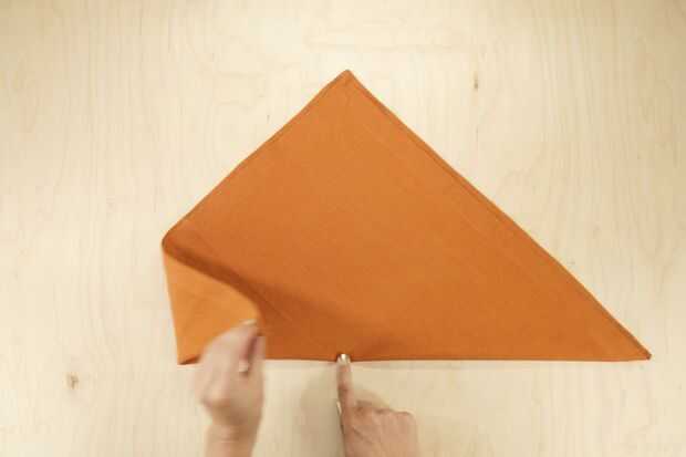 Pliegue la esquina izquierda de modo que se sienta apenas pasado el punto medio del lado largo del triángulo, como en la foto.