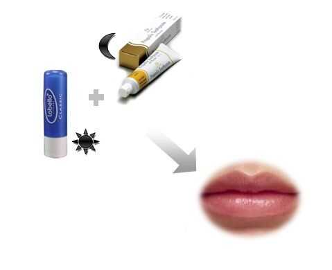 recomienda el uso de la pasta durante la noche y el bálsamo de labios regular durante el día.