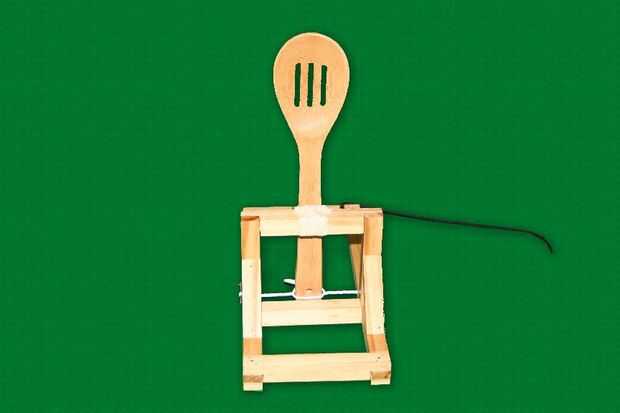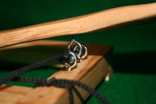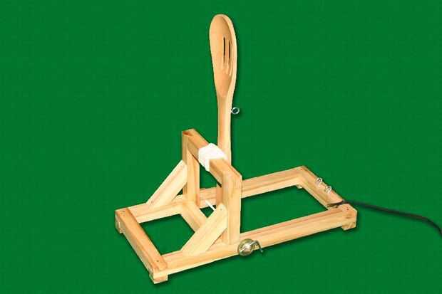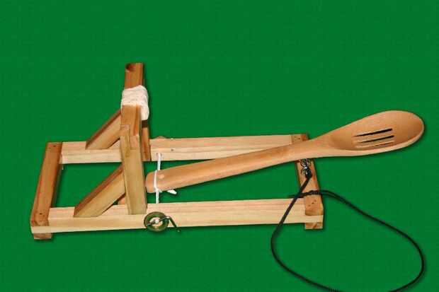 La cuchara se trae a un disparador simple (tres tornillos de ojo con un clavo para sujetar en su lugar).