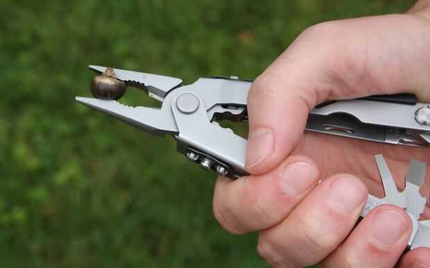 2. Sujete con una pinzas en su herramienta multiusos y dando suficiente un apretón de romper la cáscara, cuidando de no para romper el núcleo