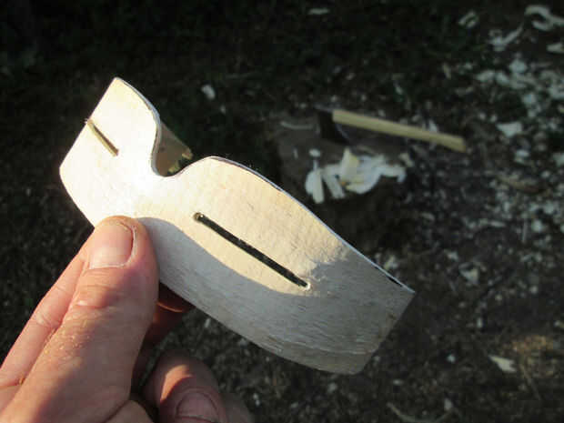Así que decidí hacer mis propias gafas de nieve/Sol, con nada más que un hacha y un cuchillo.