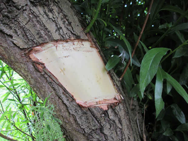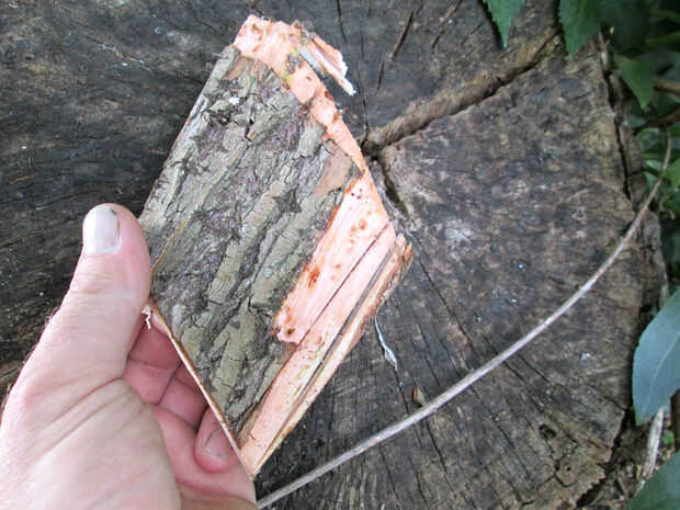 Una vez más, este instructable no trata de 'mutilación de árboles' y 'mostrar que está bien'. Se trata de cosechar un recurso natural sin matar esa fuente - supervivencia aka responsable. A menos que usted está pelando la mitad de la corteza de árboles, el árbol será repetir sí mismo muy rápido. Antes de invierno viene la herida se sutura y seco.