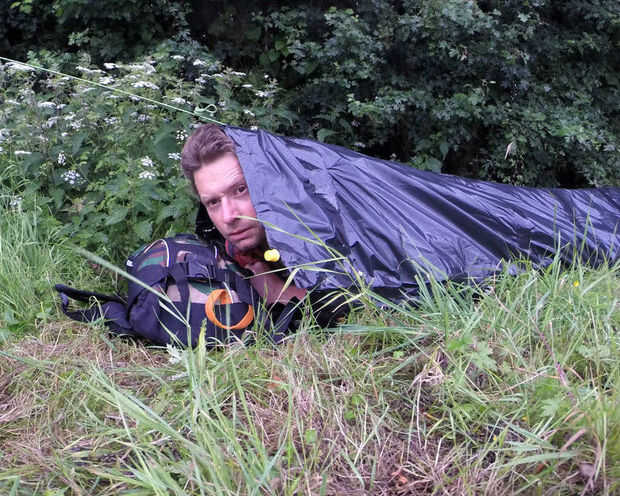 En vez de cambiar mis planes, decidí improvisar. Así que fui al mercado local y compró un rollo de bolsas de basura, algunos powertape y cinta de doble cara, una alfombra de espuma barata y una manta de supervivencia. Y también un sixpack de jugo de naranja. Y unas cuantas cervezas. Esta es la historia oficial.