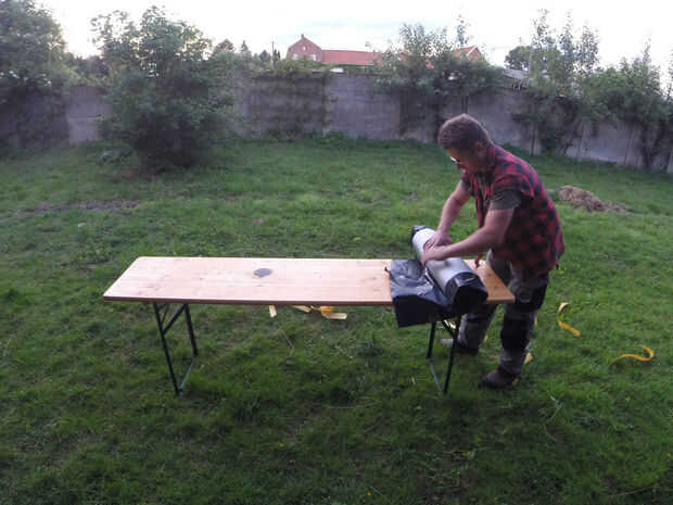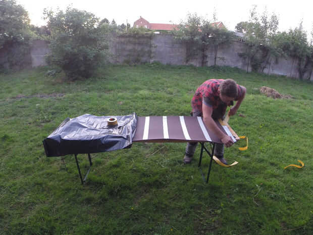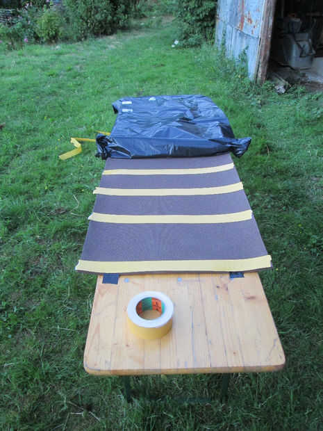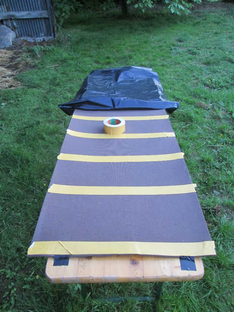 Añadir unas bandas de cinta de doble cara en el lado derecho de la alfombra y pegue el resultado del paso 1 a él.