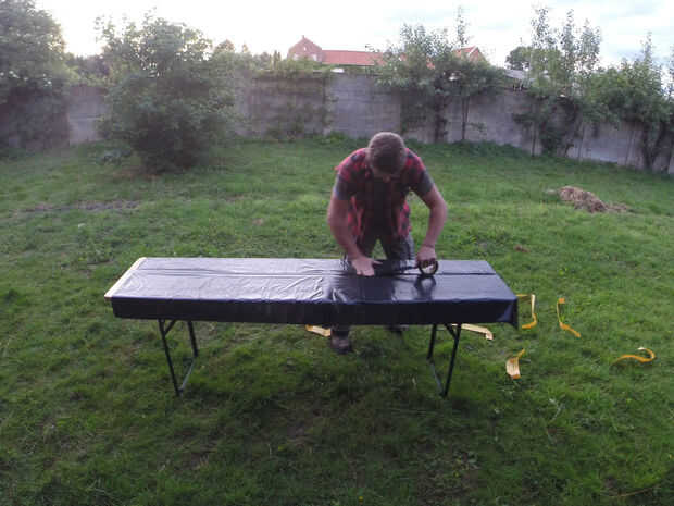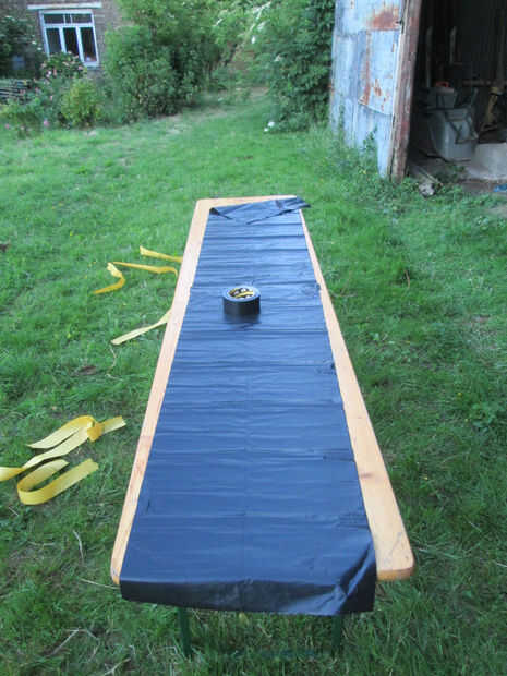 - cinta adhesiva 2 por 2 juntos - inferior a inferior aka las aberturas en las extremidades