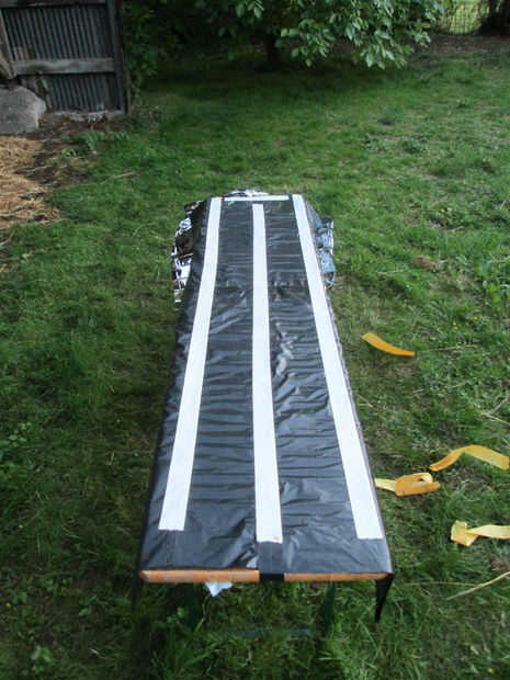 ¿Sabías que 4 bolsas de basura con cinta juntos son casi del mismo tamaño que una manta de supervivencia?