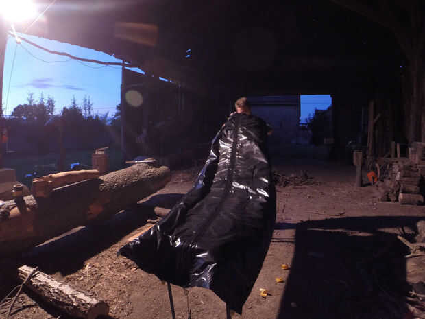 esto hizo de la banda (conseguirlo?) anoche en TechShop < www.techshop.ws> cuando mi rompevientos cayeron de mi rack > :( Yo te te lo pierdas! era celeste y tenía bordado scrolly reflexivo. Así que fui bajo el fregadero y tiene una bolsa de basur