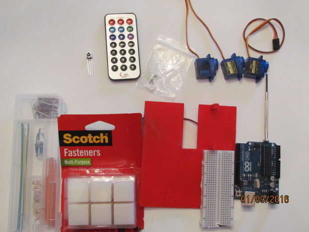 Esta es una guía para hacer un control remoto robótica brazo (6DOF) o simplemente para controlar algunos servos en algo.Puede usar un TV normal de IR remoto para controlar los servos en un brazo robótico mecánico. hay 17 botones del mando a distancia