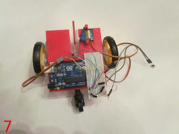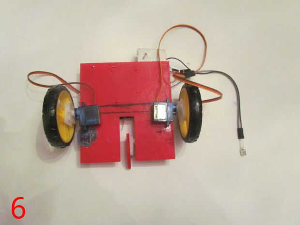 - Velcro o pega las ruedas a los brazos de servo Towerpro y conectar los servos de la parte inferior.