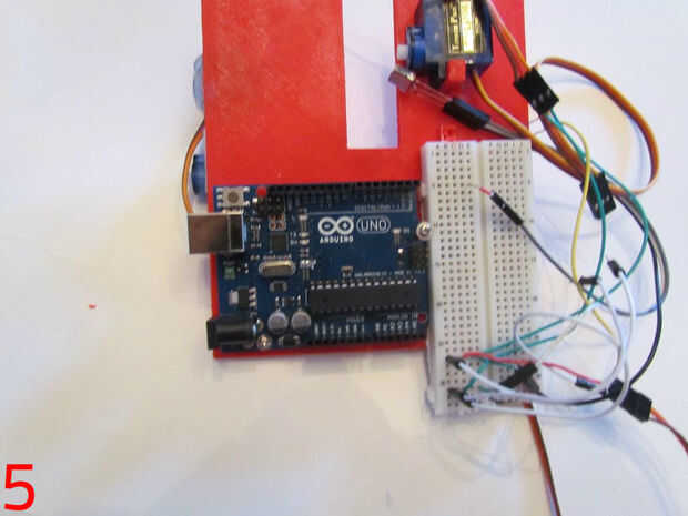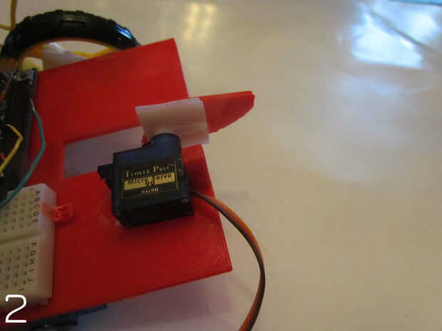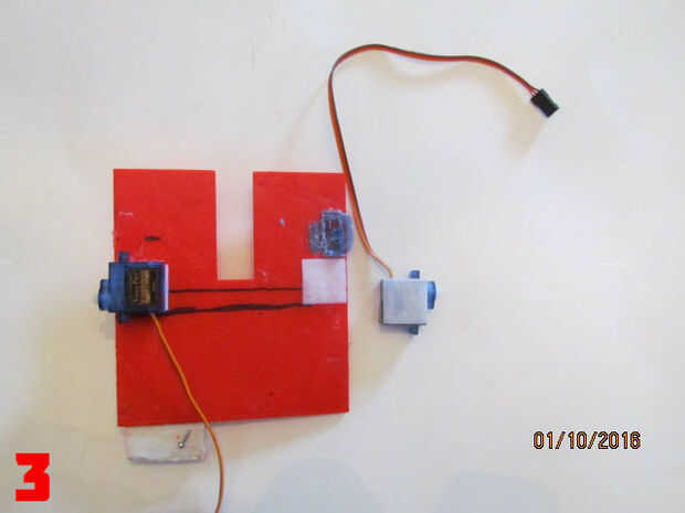 - Atornillar o pegar el golpeador al brazo del servo y adjúntelo a la serva.