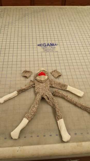 Así que esto es donde se debe de ver que todo se parece a un mono del calcetín, si las piezas aún no esta es donde se puede hacer algún recorte.