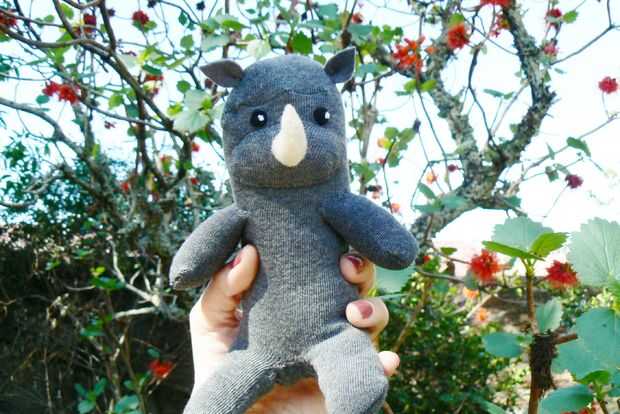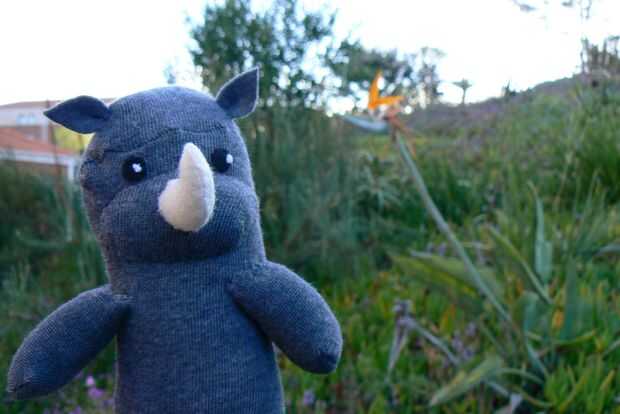 Puesto que era el día mundial del rinoceronte el 22 de septiembre, decidí celebrar mediante la creación de un rinoceronte de peluche calcetín. Este patrón es otra variación del mono calcetín tradicional, al igual que mi pereza de calcetín. Él es un compañero poco super lindo y un recordatorio de que necesitamos trabajar para asegurarse de que los rinocerontes sólo con que terminamos izquierda no son juguetes de la felpa.
