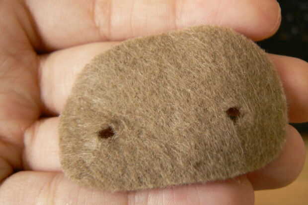 Corte un pedazo de fieltro para la cara. Añadir dos agujeros para los ojos de seguridad.