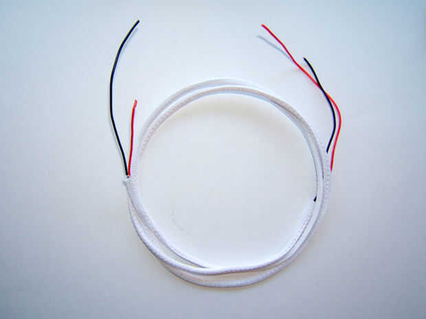 Sacar un rojo y un cable negro un par de pulgadas más largos que sus agujetas y serpiente a través de los cordones.