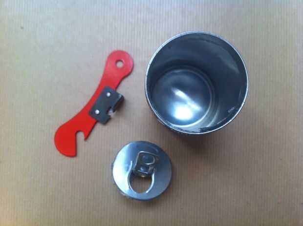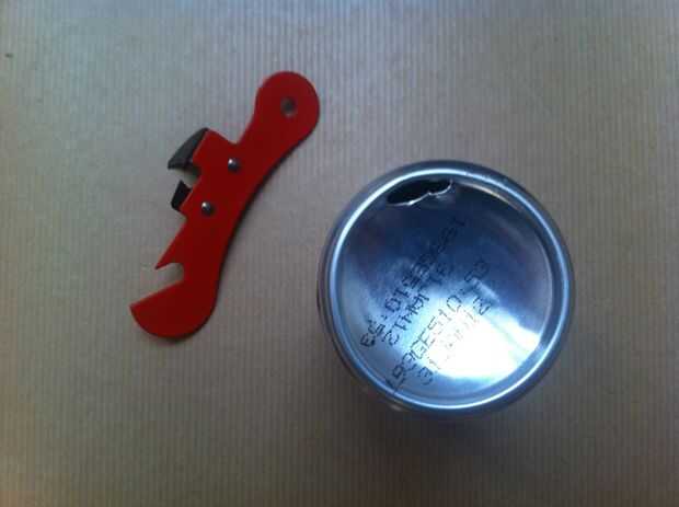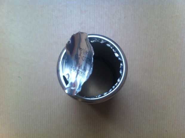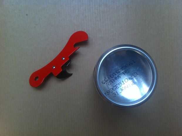 A continuación, abra este puede "de la parte inferior" (con el Abrelatas) sin usar el abrelatas de la "ficha de estancia"