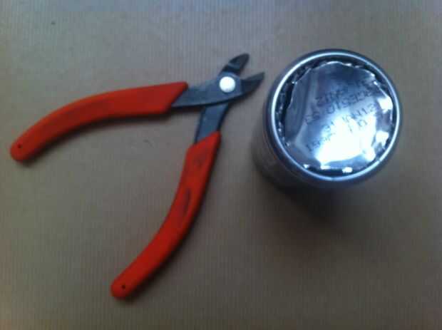 -Ahora use los alicates de corte de Metal una válvula y deja una longitud de 4 a 7 mm de metal sin cortar