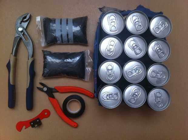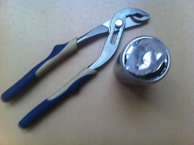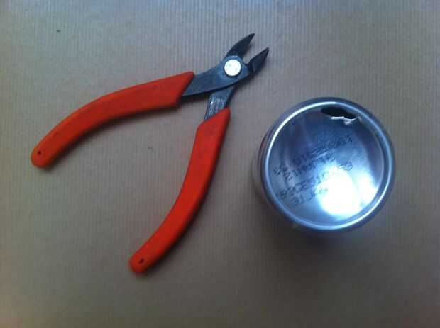 -Entonces utilice los Alicates de electricista para aplanar a lo largo de la pared interior de aluminio de la lata
