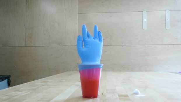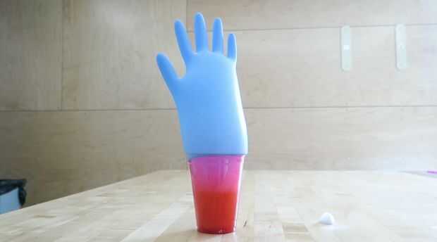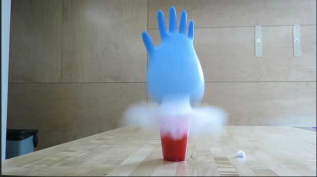 Tiempo Zombie! Como el hielo seco sublima de sólido a gas, las burbujas de la mezcla y la mano comenzarán a llenar con dióxido de carbono. Obtiene más y más, hasta que justo en el momento perfecto, sale una nube y va volando en el aire. Claramente, el guante ayuda a mantener un poco más de dióxido de carbono disuelto en el jugo, que se sumará a fizziness soda extra!