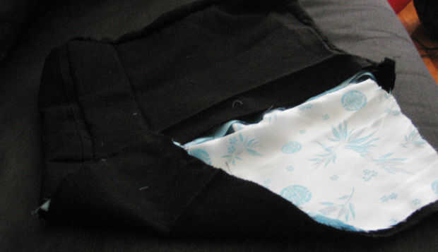1. Deslice el forro de la bolsa exterior - ambos deben girarse para que la parte final de la tela está hacia fuera (el lado derecho de la bolsa externa debe ser expuesto en el exterior, y el lado derecho del forro debe ser visible dentro de la bolsa)