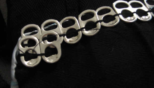3. Coloque otra pestaña al lado y coser a través de ese agujero y el agujero de la ficha anterior para conectar a la bolsa en este momento