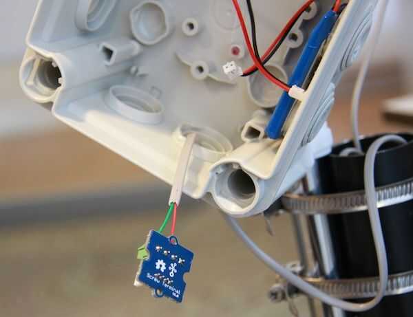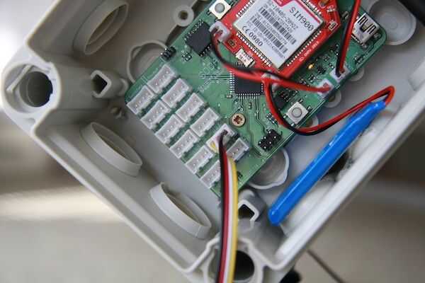 El cable de la arboleda entonces enchufa el conector de D2/D3 en la fila de 'Always On' en el tablero SODAQ.