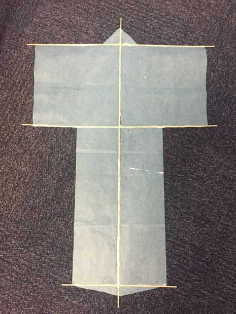 Hacer esto otra vez en la parte superior e inferior de la porción de la "t" de la cometa como se muestra en las imágenes de arriba. Asegúrese de que usted está usando su arboladura de veintidós pulgadas para esta parte de la cometa, permiten una pulgada del borde, igual que el primer spar y sosténgalo por 60-90 segundos aplicando presión en todo el mástil.