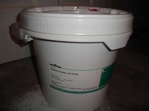 Cualquiera puede mezclar vinagre y bicarbonato de sodio en la proporción adecuada para hacer el acetato de sodio o usted puede comprar en línea o en una tienda de productos química. He mezclado mi propia antes y funcionaba bastante bien pero tomó para siempre y apestó la casa encima. Tomaría mucho tiempo para hacer suficiente acetato de sodio para llenar una bolsa grande. Hay un número de fuentes de acetato de sodio como donde lo compré aquí-- http://www.hvchemical.com/ --que es local a mí. También lo he visto en ebay por precios bastante buenos. Desea comprar acetato de sodio anhidro. Estamos haciendo el acetato de sodio trihidrato cuando mezcla con agua.