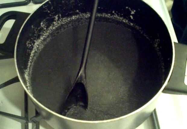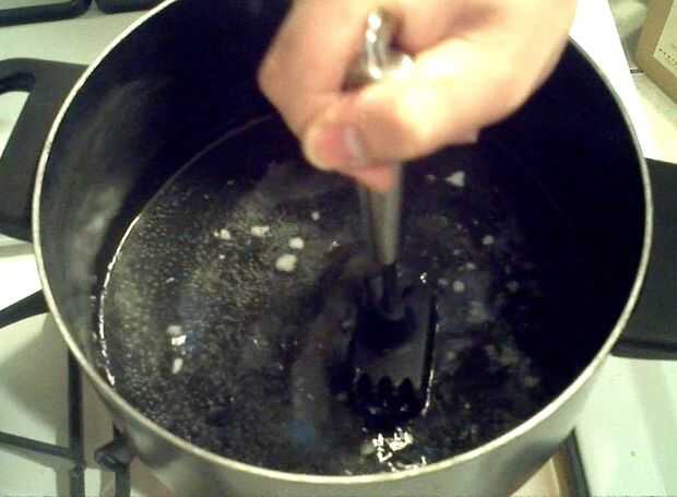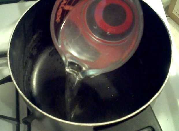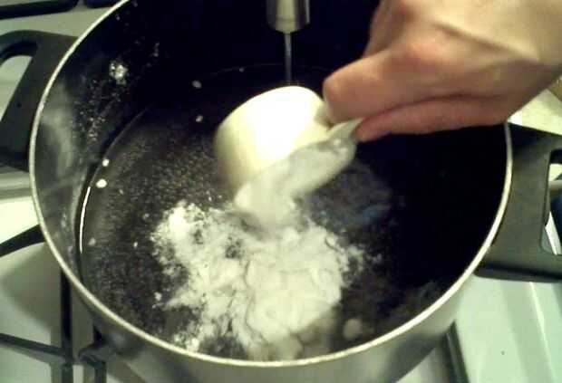 Entonces añadir el agua a la olla y poner a hervir. Luego agregar el acetato de sodio. Agitar y golpear hacia fuera los terrones hasta que todo haya disuelto. En este punto la solución debe estar cerca de ebullición y debe haber una capa cristalina super delgada en la parte superior de la solución. Desea que su derecho de solución en el punto donde aparece esta capa. Se puede jugar con la consistencia añadiendo más agua, agua hirviendo apagado o añadiendo más acetato de sodio.