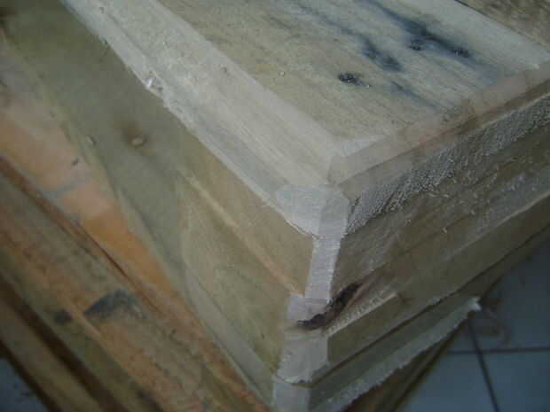 Como las paletas fueron vendidas sin ningún tratamiento (sin lijado, corte solamente), fue necesario recortar algunos rincones y esquinas, porque como tengo un bebé de 2 años en casa ofrece gran riesgo de corte y molido.