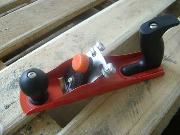 Para eliminar os cantos principais utilizei uma plaina (me daria menos trabalho), regulando seu fio para um tamanho bem pequeno, cerca de 2-3 mm (e ideia era fazer devagar, uma vez que un madeira utilizada - eucalipto - não é boa de ser trabalhada).