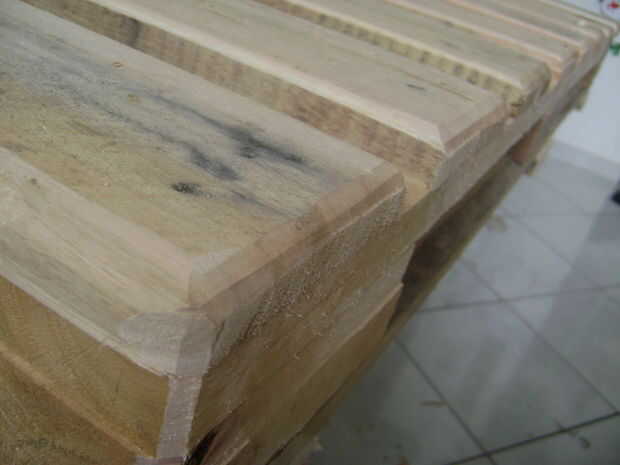 Como os paletas eram vendidos sem beneficiamento algum (sem lixar, só cortados), foi necessário aparar alguns cantos e quinas, pois como tenho um neném de 2 anos em casa eles ofereciam grande risco de corte e machucados.