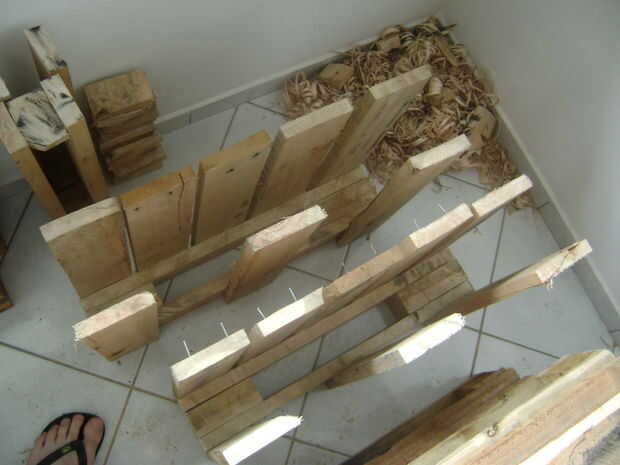 Para fazer o pedaço menor desmontei como sobras, serrei e repreguei elas no desejado de tamanho (60 cm X 40 cm), irei lixar quando puder de aplainei e.