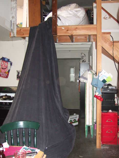 -Mantenga la boca del sofá con el resto colgando hacia abajo de una escalera