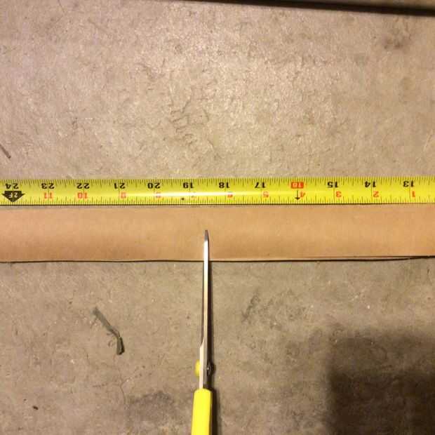 - Usando el material de refuerzo, cortar un trozo de 1.5" de ancho por la longitud a medir. Aquí, tuve algunas embarcaciones pesadas que debían ser doblado, así que corte un trozo 3 x 18,5 pulg. y doblado a lo largo para hacer una franja de 1.5" de ancho de papel.