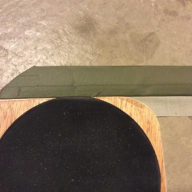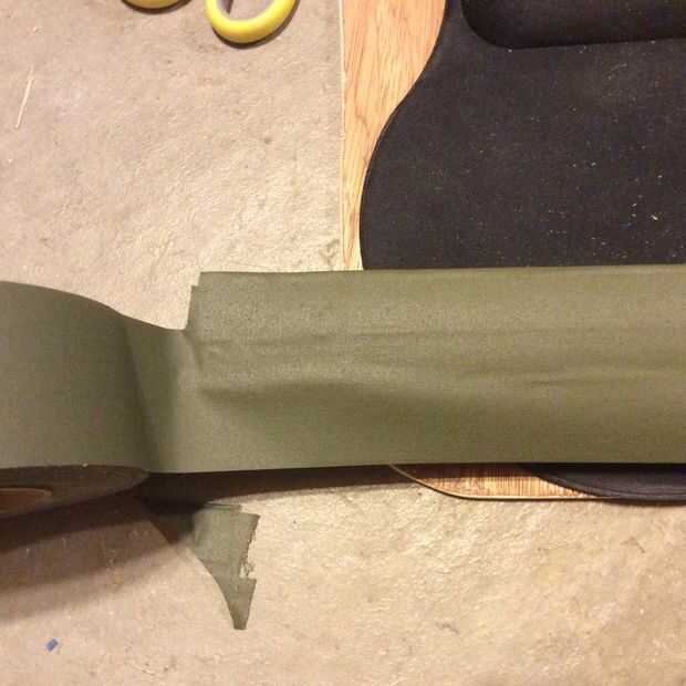 - Coloque cinta a la tira para que la mitad del ancho de la cinta se pega a la tira, la otra mitad es libre (se pegan a la parte inferior del tablero). No tienes que hacer toda la longitud a la vez, está bien hacerlo en secciones.