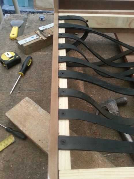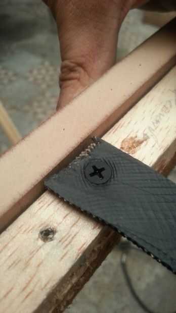 Coloque la correa en el marco de madera de pino con tornillos, como se puede ver en las fotos.