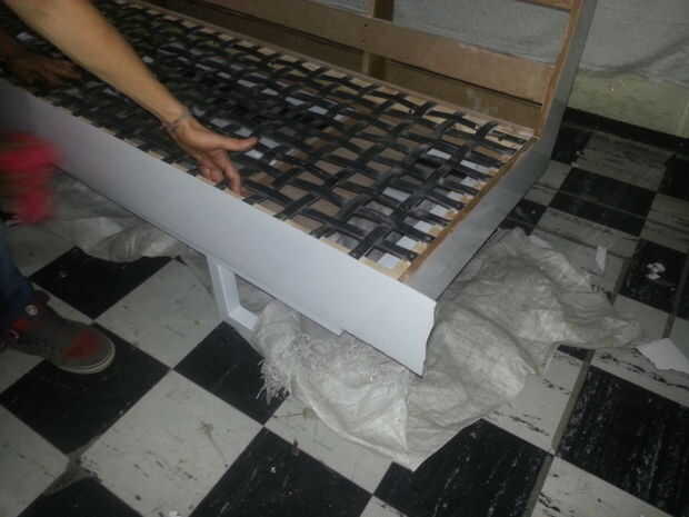 mi novio y yo apenas se movió en nuestro nuevo lugar; Cuando nos encontramos sin un sofá lo suficientemente grande para toda la familia (él, yo y nuestras mascotas), hicimos este sofá descansar en una cama llena de DALSELV IKEA (que ya tenía) y un ca