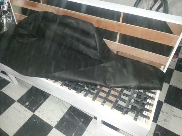 mi novio y yo apenas se movió en nuestro nuevo lugar; Cuando nos encontramos sin un sofá lo suficientemente grande para toda la familia (él, yo y nuestras mascotas), hicimos este sofá descansar en una cama llena de DALSELV IKEA (que ya tenía) y un ca