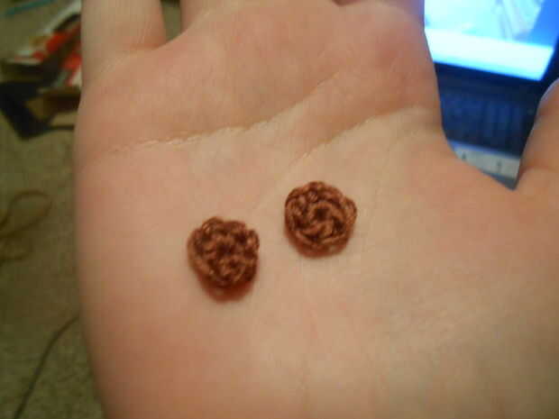 Terminar y tejer en los extremos. Coloque un poco de pegamento entre la base de este brazo y a la cama.