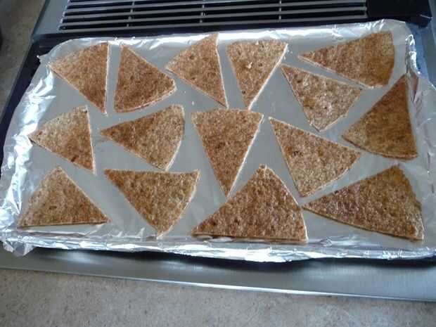Hornear las T-virutas en el horno precalentado durante 8-12 minutos, o hasta que esté ligeramente tostado y crujiente. Este es el paso más crítico de esta receta todo. Todos sabemos que temps de horno varían, así que mantener una estrecha vigilancia sobre ellos. Usted quiere crujiente, pero no quemados o demasiado cocidos.