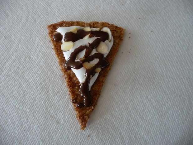 Quitar las rebanadas de almendra heladas del congelador y manualmente buceo/pila les (ingeniosamente?) en la crema de malvavisco congelados. Simplemente "puesta" en la parte superior funciona bien, pero por el bien de "bonito", que desea apilar para crear una textura 3D.