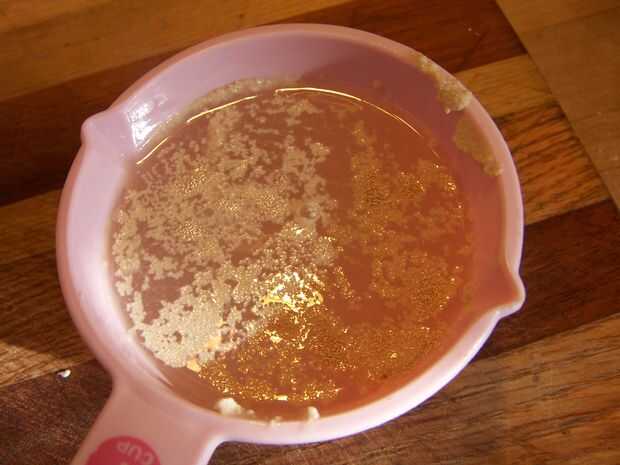 Se puede ver en esta imagen la levadura se haya disuelto y está lista para usar.