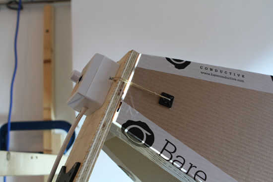 Algunas bandas de goma a través de los montajes del hilo de rosca y haga nudos en las bandas para que no caiga hacia fuera.