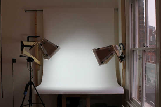 Hasta ahora he hecho dos luces, también tenemos un rollo de 1,5 m de papel para crear un fondo blanco liso. El atenuador nos permite controlar los niveles de luz aunque en su mayoría son brillo acaba por completo.